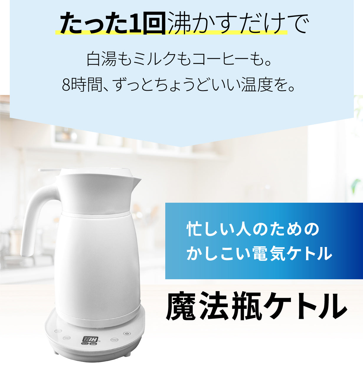 「1日1回」沸かすだけで8時間保温! 1日中快適な魔法瓶ケトル 保温ポット 魔法瓶ケトル ポット 保温 電気ケトル 電気ポット 真空 ケトル 漏れない 断熱 湯沸かし オフィス